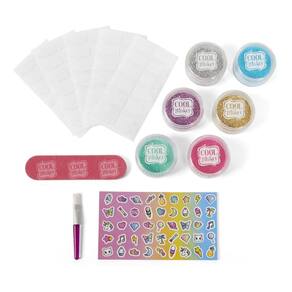 Surpreenda suas amigas com uma manicure brilhante e colorida. Este conjunto de esmaltes vem com ferramentas para criar unhas ainda mais coloridas e estilosas.Escolha entre seis potes de glitter de cores vibrantes e desenhe sua própria cor! Adicione adesivos à suas unhas. Eles são o toque final perfeito!!