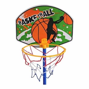 Conteúdo da embalagem: 1 - bola de basquete em vinil 1 - bola de futebol em vinil 1 - bomba de ar manual 1 - suporte para pendurar a tabela na porta 1 - tabela de basquete 7 - tubos longos 5 - junções em l 1 - junção em t 4 - ponteiras fixadoras 1 - rede para o gol Marca: Não Informado Ean: 7894017023519