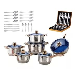Kit gourmet completo jogo de panelas 23 peças + talher faqueiro 16 peças Jogo de panelas alemã - aço cirúrgico 23 peças - luxo azul