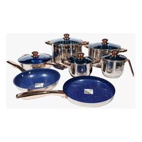 - panelas de ótima qualidade - peças em aço cirúrgico com revestimento antiaderente. - usada pelos melhores chefes de cozinha do mundo. - super luxuosa. - cabo rose gold - revestimento pfluon em cor azul.