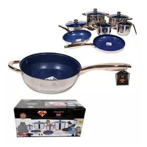 Jogo de panelas 12 peças 01 - 1 panela 6.5 litros medindo 24cmx14cm com tampa de vidro 02 - 1 panela 3.0 litros medindo 20cmx10cm com tampa de vidro 03 - 1 panela 1.6 litros medindo 16cmx08cm com tampa de vidro 04 - 1 frigideira 3.0 litros medindo 24cmx6.5cm com tampa de vidro 05 - 1 panela 1.6 litros medindo 16cmx09cm com tampa de vidro 06 - 1 panela vaporizadora medindo 20cmx10cm sem tampa 07 - 1 cesta inox fritadeira medindo 18cm