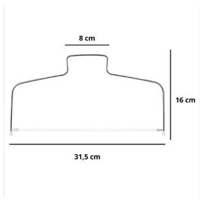 O Nivelador Fatiador para Bolos é um acessório perfeito para o corte em camadas e acabamentos profissionais e caseiros. O Nivelador contém um ajuste de altura através do mecanismo de regulagem com duas linhas de Fio de Aço de Corte ajustáveis para realização dos cortes com total precisão. Utensílio ideal para personalizar a decoração de bolos, tortas, sobremesas entre outros. Produto extremamente eficaz, durável e apropriado para o uso constante.