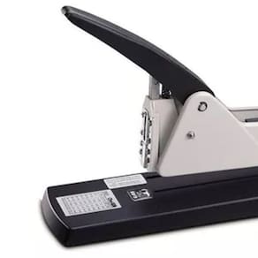 O grampeador profissional metal longo alcance 250 mm para até 200 folhas é uma ferramenta robusta e pensada para quem precisa unir grandes volumes de papel com rapidez e segurança. Feito em metal resistente, ele oferece maior durabilidade e firmeza do que os grampeadores comuns, suportando uso intenso em ambientes como escritórios, gráficas, repartições públicas, escolas e papelarias. O longo alcance de 250 mm permite grampear documentos bem no centro ou em áreas mais profundas da folha, o que é ideal para relatórios espessos, pastas, fichários e materiais encadernados, garantindo que tudo fique bem preso e profissionalmente apresentado. Por ser projetado para até 200 folhas por vez, ele reduz o tempo gasto organizando pilhas de papel, evitando múltiplas grampeações e mantendo os documentos alinhados e seguros. Além disso, a construção metálica confere estabilidade ao equipamento, diminuindo a chance de travamentos ou falhas durante o uso. O design geralmente inclui alavanca ergonômica que facilita a aplicação da força, tornando o grampeamento menos cansativo mesmo em tarefas maiores. É a escolha certa para quem busca eficiência, confiabilidade e precisão na organização de papéis volumosos no dia a dia. Grampeador de longo alcance, modelo 5000. Este grampeador profissional possui corpo e estrutura em metal, proporcionando a força necessária para grampear até 200 folhas de maneira ágil e prática. Possui ajuste de profundidade de até 25 cm e capacidade para armazenar até 200 grampos.