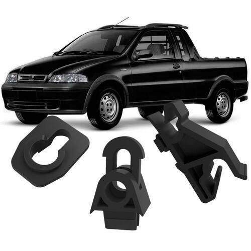 Kit Fixação com 3 Grampos Presilhas para Haste Vareta do Capô Strada 1998 até 2020APLICAÇÃO:STRADA G1: 1998, 1999, 2000STRADA G2: 2001, 2002, 2003, 2004, 2005, 2006, 2007STRADA G3: 2004, 2005, 2006, 2007, 2008, 2009, 2010, 2011, 2012STRADA G4: 2008, 2009, 2010, 2011, 2012, 2013, 2014, 2015, 2016, 2017, 2018, 2019, 2020Especificação Técnica do Kit:Grampo Fabricado em Plástico de Alta ResistênciaAlta DurabilidadeFácil InstalaçãoÓtimo AcabamentoEncaixe PerfeitoProduto similar ao da MontadoraProduto NovoA Haste/Vareta do Capô não Acompanha o Kit de FixaçãoConteúdo da Embalagem:02 Grampos de Descanso para Vareta01 Grampo de Sustentação da VaretaImportante:Garantia de Fabrica: 3 Meses.Valor: Kit com 3 peças.Imagens Meramente Ilustrativas.Recomendamos que a instalação seja feita por profissional especializado e não nos responsabilizamos pelo mau uso do produto.