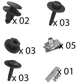 Especificação Técnica do Kit: Kit com 17 Peças Para Fixação do Para-barro Dianteiro Este Kit Permite a Fixação de Apenas 01 (UM) Para-barro Grampos e Porca Fabricados em Plástico de Alta Resistência Parafusos e Porcas Rápida Fabricados em Metal de Alta Resistência Alta Durabilidade Fácil Instalação Ótimo Acabamento Encaixe Perfeito O Para-barro não Acompanha o Kit de Fixação!