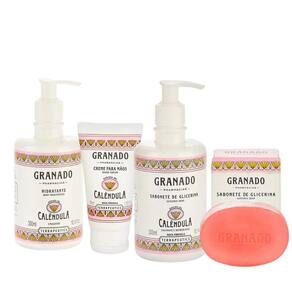 Sabonete Liquido de Glicerina Granado Calendula 300ml Formulado com pH da pele, glicerina vegetal e alta concentração de extrato natural de calêndula, que acalma a pele. Limpa suavemente a pele, deixando-a macia e perfumada. Fórmula biodegradável. Livre de parabenos e ingredientes de origem animal. Conteúdo: 300ml.Aplique o seu sabonete líquido Granado sobre a pele molhada das mãos ou do corpo e massageie suavemente para obter espuma. Em seguida, enxágue abundantemente.