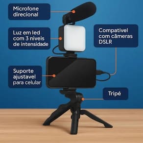 Grave vídeos incríveis com qualidade Este kit 5 em 1 para gravação com celular é ideal para youtubers, gamers, criadores de conteúdo, tiktokers, professores, profissionais de marketing digital e para quem deseja transformar seu celular em um estudio de gravação leve seu conteúdo a outro nível O que vem no kit - tripé de mesa ajustável e firme - luz led com 3 níveis de intensidade - microfone direcional com ótimo som + cabo p2 - suporte universal para celular - controle remoto bluetooth Perfeito para: Lives podcasts aulas online reels e tiktoks Compatível com android e . Fácil de montar e transportar. Transforme seu celular em um estúdio portátil Kit completo, versátil e portáril, o vídeo making kit atende diferentes planos de uso. Fácil de montar e encaixar, além de compacto para transportar para onde quiser. Traga mais qualidade nas gravações de vídeos e faça fotos, não importa o lugar, este kit para você ==================================== Características do mini iluminador de led: - cor da estrutura: preto - potência: 5w - quantidade de leds: 49 - temperatura de cor: 6.500k +- 200k - alimentação led: 3 pilhas aaa não inclusas - duração da bateria: 1,5 horas a 6.500k 100% ligado ==================================== Características do microfone: - cor da estrutura: preto - nível de ruído: 24dba - resposta de frequência: 50hz - 16 khz - nível máximo sonora: 130db thd menor igual 1.5% at1khz - sensibilidade: -45db3db odb = 1v / pa at 1khz equivalente - aprimoramento de sensibilidade: +20db2db - impedância de saída: 200 ohms 30% atkhz ==================================== Características do controle: - cor da estrutura: preto - utilidade: para disparo de selfies e vídeos à distância - alcance do bluetooth: até 5m - compatibilidade: android: a partir da versão 4.22 ou superior / ios: a partir da versão 6.0 ou superior ==================================== Características do suporte para celular: - cor da estrutura: preto - tipo de rosca: 1/4 - possui encaixe para sapata - compatível com celulares que possuem até 8,5cm de largura máxima Importante: aparelhos que não possuem entrada p2 igual a entrada de fone de ouvido e tem somente entrada tipo-c e lightining , precisam de um adaptador para funcionar este kit não vai com o adaptador. Conexão microfone e celular: é necessário que o cabo p2 seja conectado utilizando sua conexão reta no celular e a conexão em l no microfone do kit. Envio imediado produto com do vendedor: 7 dias Homologação Anatel: 112572013224 Marca: Não Informado Ean: 7897720241157