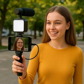 Grave vídeos incríveis com qualidade Este kit 5 em 1 para gravação com celular é ideal para youtubers, gamers, criadores de conteúdo, tiktokers, professores, profissionais de marketing digital e para quem deseja transformar seu celular em um estudio de gravação leve seu conteúdo a outro nível O que vem no kit - tripé de mesa ajustável e firme - luz led com 3 níveis de intensidade - microfone direcional com ótimo som + cabo p2 - suporte universal para celular - controle remoto bluetooth Perfeito para: Lives podcasts aulas online reels e tiktoks Compatível com android e . Fácil de montar e transportar. Transforme seu celular em um estúdio portátil Kit completo, versátil e portáril, o vídeo making kit atende diferentes planos de uso. Fácil de montar e encaixar, além de compacto para transportar para onde quiser. Traga mais qualidade nas gravações de vídeos e faça fotos, não importa o lugar, este kit para você ==================================== Características do mini iluminador de led: - cor da estrutura: preto - potência: 5w - quantidade de leds: 49 - temperatura de cor: 6.500k +- 200k - alimentação led: 3 pilhas aaa não inclusas - duração da bateria: 1,5 horas a 6.500k 100% ligado ==================================== Características do microfone: - cor da estrutura: preto - nível de ruído: 24dba - resposta de frequência: 50hz - 16 khz - nível máximo sonora: 130db thd menor igual 1.5% at1khz - sensibilidade: -45db3db odb = 1v / pa at 1khz equivalente - aprimoramento de sensibilidade: +20db2db - impedância de saída: 200 ohms 30% atkhz ==================================== Características do controle: - cor da estrutura: preto - utilidade: para disparo de selfies e vídeos à distância - alcance do bluetooth: até 5m - compatibilidade: android: a partir da versão 4.22 ou superior / ios: a partir da versão 6.0 ou superior ==================================== Características do suporte para celular: - cor da estrutura: preto - tipo de rosca: 1/4 - possui encaixe para sapata - compatível com celulares que possuem até 8,5cm de largura máxima Importante: aparelhos que não possuem entrada p2 igual a entrada de fone de ouvido e tem somente entrada tipo-c e lightining , precisam de um adaptador para funcionar este kit não vai com o adaptador. Conexão microfone e celular: é necessário que o cabo p2 seja conectado utilizando sua conexão reta no celular e a conexão em l no microfone do kit. Envio imediado produto com do vendedor: 7 dias Homologação Anatel: 112572013224