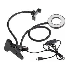 Kit Gravação Ring Ligth Suporte Celular com Controle Kit Gravação Ring Light Suporte Celular Com Controle por maquiadores, youtubers, barbeiros, fotógrafos entre outros profissionais. Este modelo de Ring Light vai te proporcionar a iluminação perfeita para fotografar ou gravar seus trabalhos para as redes sociais ou o seu canal Excelente para criar vídeos , seja com smartphone ou computador. Faça vídeos com qualidade ou tire ótimas fotos de selfie com este suporte ring light. Hastes flexíveis que podem dobrar para qualquer direção, suporte de rotação do smartphone 360 graus e grampo para fixação em mesas, bancadas, prateleiras, etc. Possui configurações de matiz e brilho para obter a iluminação certa, basta escolher entre 3 modos de luz e 9 níveis de brilho para os seus usos preferidos: maquiagem, flat lay, fotos de selfie, vlogging, cenários escuros, etc. Detalhes: - Modelo: - Peso: 480g - 3 modos de luz branca, amarela e mista e 9 níveis de brilho - Potencia: 12w - Material: Aço e plástico ABS - Compatibilidade: Largura máxima aproximada do suporte telefone é de 8,6 cm - Conexões: USB 5V Tamanho: - Cabo USB: 1,20 m - Altura máxima aproximada: haste ring light 61,5 cm, haste smartphone 34,5 cm e Diâmetro aproximado do ring light: 8,5 cm Conteúdo: - 1 Iluminador ring light com suporte articulado de mesa para celular smartphone com controle - 1 Suporte para o celular smartphone Homologação Anatel: 080281811799 Marca: Não Informado