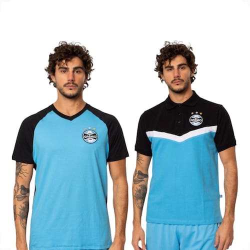 KIT CONTÉM 2 PEÇAS- CAMISETA RAGLAN E CAMISETA POLO PIQUET. Aproveite nosso kit ideal para torcedores que buscam mostrar seu apoio ao Grêmio com estilo e conforto, em qualquer ocasião! Nossa camiseta raglan, uma peça essencial feita em meia malha 100% algodão, combina design moderno com um ajuste confortável.
