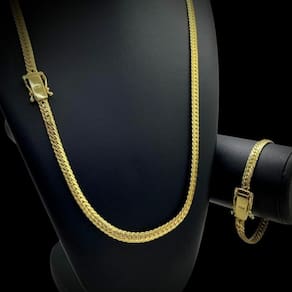 Kit Grumet Cubano 7mm + Pulseira Banhado a Ouro 18K Detalhes do Produto: Material: ligas metálicas de alta qualidade, especialmente tratadas para fixação e absorção do ouro, com acabamento em verniz protetor. Aparência: visual idêntico ao ouro maciço. Produção: artesanal, com atenção meticulosa aos detalhes. Banho: 10 camadas espessas de ouro 18k, finalizadas com verniz antialérgico . Elos: soldados varia conforme o modelo . Pedras: zircônias brilhantes cravejadas quando aplicável . Tamanhos Disponíveis: Cordões Masculinos: 70cm padrão e 60cm sob consulta/Pedido Via Chat . Cordões Femininos: 50cm padrão e 45cm sob consulta/Pedido Via Chat . Pulseiras: 21cm padrão ; tamanhos de 18cm a 23cm sob consulta/Pedido Via Chat. Pingentes: conforme imagens; consulte para mais detalhes via chat. Espessuras Recomendadas para Cordões / Pingentes: P: 1mm a 4mm M: 4mm a 8mm G: 6mm a 13mm Gg: 12mm a 18mm Incluso na Compra: Saquinho de organza para armazenamento seguro. Caixa elegante, perfeita para presente. Cupom de desconto para a próxima compra. Flyer com outros produtos da coleção. Carta de agradecimento personalizada. Adesivo da marca ToJoia18k. Informações Adicionais: : 6 meses termos acompanham o produto . Devolução: 7 dias para devolução sem questionamentos. Envio: despacho em até 24 horas úteis após confirmação do pagamento. Cuidados com a Peça: Evite contato com produtos químicos; aguarde o perfume secar antes de usar. Evite contato com shampoo, condicionadores e suor excessivo. Armazene em local seco, preferencialmente no saquinho de organza fornecido. Uso no mar e piscina é permitido; lave com água corrente e sabão neutro após. Por que Escolher a ToJoia18k Semi-joias luxuosas que combinam estilo, qualidade e sofisticação. Banho espesso de ouro 18k, garantindo brilho duradouro e acabamento impecável. Design exclusivo e produção artesanal, perfeitos para qualquer ocasião. Materiais premium que asseguram durabilidade. Ao escolher uma semi-joia ToJoia18k, você investe em qualidade, elegância e uma experiência única. Aguardamos sua compra Observação: pode ocorrer variação no fecho raramente . Imagens reais, sem edição. Qualquer dúvida, estamos à disposição para esclarecimentos. Marca: Não Informado Ean: 7899830200239
