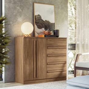 A comoda possui 2 portas,5 gavetas e 1 cabideiro, garantindo um amplo espaço para armazenar desde sapatos e roupas a todos os tipos de itens.
