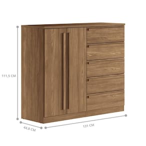 A comoda possui portas, gavetas e cabideiro, garantindo um amplo espaço para armazenar desde sapatos e roupas a todos os tipos de itens.