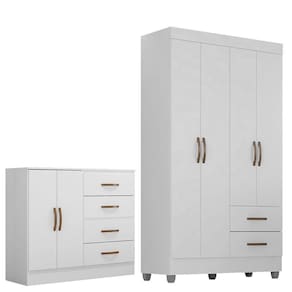 Acompanha o produto: - 1 x Guarda-Roupa Solteiro 4 Portas Lisa - 1 x Cômoda Sapateira 2 Portas Lisa - Manual de Montagem - Acessórios de Montagem