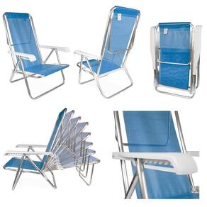 A cadeira fica completamente sentada na posição 1 e completamente deitada na posição 8, ideal para banhos de sol, além disso, seu apoio permite maior estabilidade nessa posição. Sua tela é produzida em 100% poliéster com revestimento em PVC. Super resistente, suporta até 100 Kg e vai ser a opção perfeita para seus momentos de descanso.