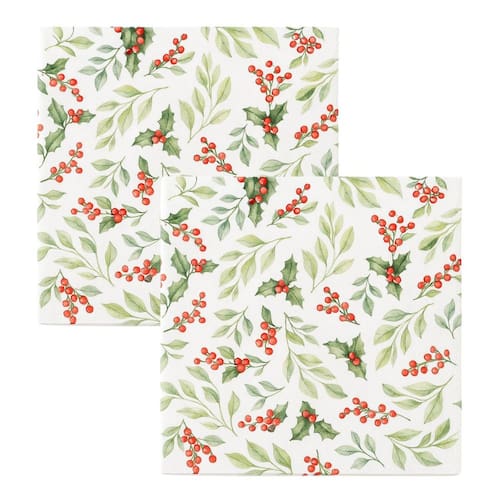 Guardanapo de Natal Estampado Folhagens Azevinhos – 40 Unidades