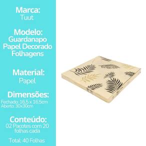 Kit Guardanapo Decorado Bege Folhagens Luxo 40 Folhas 33cm
