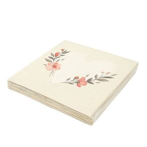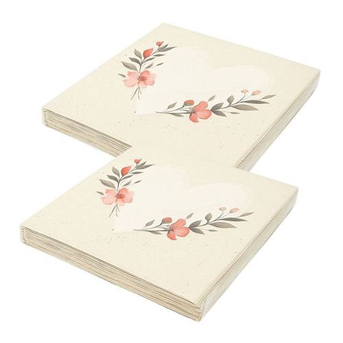 Guardanapo Decorado de Papel – Estampa Coração Florido Bege e Rosa – Pacote com 20 Unidades