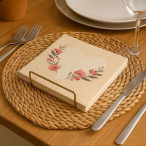 Traga romantismo e delicadeza à sua mesa com o Guardanapo Decorado de Papel com Estampa de Coração Florido. Com design encantador em tons suaves de bege e rosa, ele é perfeito para compor mesas em almoços especiais, chás da tarde, cafés, aniversários, eventos românticos ou datas comemorativas como Dia das Mães e Dia dos Namorados.