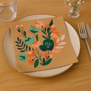 Dica: Combine com sousplats ou jogos americanos neutros para valorizar ainda mais a estampa floral do guardanapo.