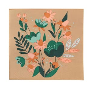 Guardanapo de Papel Estampado Flores e Folhagens – Marrom, Verde e Laranja | Pacote com 20 Unidades – 33x33cm Aberto
