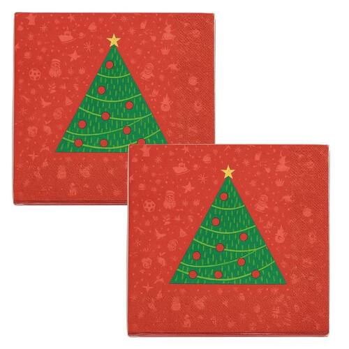 Guardanapo de Natal Estampado Vermelho com Pinheiro – 40 Unidades