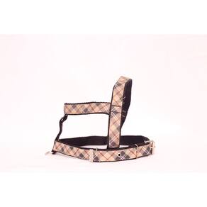Peitoral de nylon 25 mm xadrez marrom com fivela de metal; Guia de nylon 25 mm xadrez; Mosquetão com trava de segurança; Cor marrom. Tamanho: nº 5. Praticidade, conforme para seu pet de pequeno a médio porte. Passei com estilo e elegância. Medidas aproximadas: Pescoço 45 cm. Tórax 50 à 60 cm. Guia 85cm. Marca: Nica pet