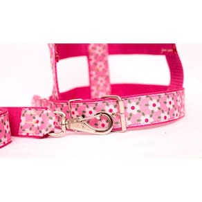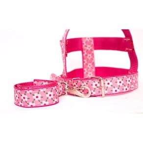 Peitoral de nylon 40 mm xadrez rosa e com fivela de metal; Guia de nylon 40 mm xadrez; Mosquetão com trava de segurança; Cor : rosa. Tamanho: nº 11. Praticidade, conforme para seu pet de médio e grande porte. Passei com estilo e elegância. Medidas aproximadas: Pescoço 76 cm. Tórax 82 à 103 cm. Guia 60 cm. Marca: Nica pet