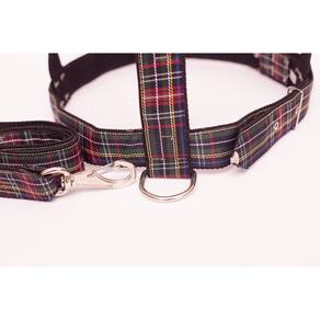 Peitoral de nylon 40 mm xadrez preto e com fivela de metal; Guia de nylon 40 mm xadrez; Mosquetão com trava de segurança; Cor : preto. Tamanho: nº 11. Praticidade, conforme para seu pet de médio e grande porte. Passei com estilo e elegância. Medidas aproximadas: Pescoço 76 cm. Tórax 82 à 103 cm. Guia 60 cm. Marca: Não Informado