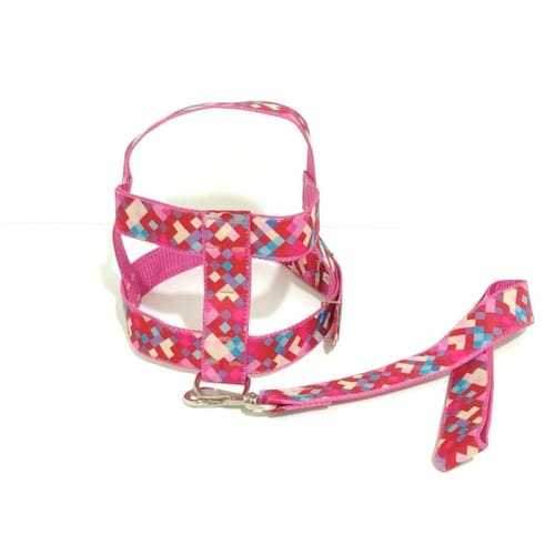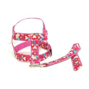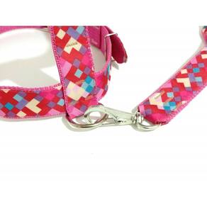 Peitoral de nylon 40 mm xadrez azul e com fivela de metal; Guia de nylon 40 mm xadrez rosa; Mosquetão com trava de segurança; Cor : rosa. Tamanho: nº 9. Praticidade, conforme para seu pet de médio e grande porte. Passei com estilo e elegância. Medidas aproximadas: Pescoço 65 cm. Tórax 63 à 84 cm. Guia 60 cm. Marca: Nica pet