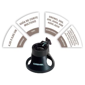 Converta a sua micro retífica Dremel em um cortador de azulejos de parede de alta potência com o kit de corte de azulejos. A partir da palma da sua mão, execute corte precisos rápida e facilmente com qualquer forma ou tamanho. As amplas janelas das guias de corte evitam que perca de vista a sua peça de trabalho para a máxima precisão. Proporciona-lhe um controle robusto e permite uma profundidade de corte ajustável de 20 mm.