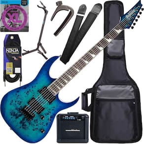 pguitarra Ibanez GRGR 221 PA, Super Strato com captadores na configuração HH. Possui Headstock Invertido e marcação Estilo Dente de Tubarão Sharktooth Reversa . Disponível na cor Aqua Burst AQB . A Série Gio da Ibanez prova que as guitarras não precisam ter um custo alto para ter um som de qualidade. Esta série foi desenvolvida por músicos que buscam justamente isso, custo/benefício. Com rigorosa inspeção, a construção e são as mesmas dos modelos mais caros. ESPECIFICAÇÕES Modelo: GRGR 221 PA Série: Gio Construção: Braço Parafusado Bolt On Braço: GRGR em Maple Tampo: Poplar Burl Art Grain Corpo: Okoume Escala: Bound Purpleheart Marcação: Estilo Dente de Tubarão Sharktooth Reversa Trastes: 24 Tipo de Trastes: Jumbo Ponte: F106 FIxa Headstock: Invertido Espaçamento das Cordas: 10.5mm Captação: IBZ-6 H Braço Passivo/Cerâmico IBZ-6 H Ponte Passive/Ceramico Controles: 1 Volume, 1 Tone Chave Seletora: 5 Posições Afinação de Fábrica: 1E,2B,3G,4D,5A,6E Calibre das cordas: .010/.013/.017/.026/.036/.046 Nut: Plástico Ferragens: Pretas Cor: Aqua Burst AQB Dimensões do Braço Escala: 648mm/25.5 a: Largura 43mm no NUT b: Largura 58mm no 24ºT c: Espessura 19,5mm no 1ºT d: Espessura 21,5mm no 12ºT Raio 400mmR ITENS INCLUSOS : Guitarra Elétrica Ibanez GRGR 221 PA Capa Bag Guitarra Premium Correia Cabo Ninja Capotraste Ns Capo D'addario Encordoamento Exl120-b D'addario Suporte G3s Cubo Amplificador/p Ean: 7892436504930