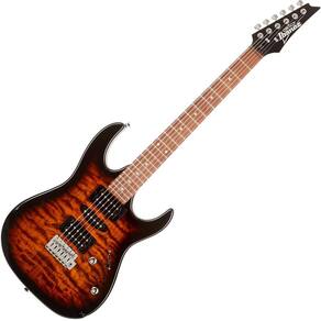 Guitarra Ibanez GRX70QA. Ponte T106 Tremolo. Disponível na cor Sunburst. A série GRX da Ibanez possui toda qualidade e precisão utilizada nos modelos mais caros, porém, com preços que não fazem a música parar. Só porque você está começando, não significa que você precise iniciar seus estudos com um instrumento inferior. Quanto melhor a guitarra, mais rápido se aprende.