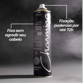 O Hair Spray Charming Extra forte é indispensável na bancada dos profissionais de cabelo. Oferece jato seco, fixação prolongada e duradoura. Ideal para texturização, montagem e finalização para penteados mais elaborados em diferentes tipos de cabelos.