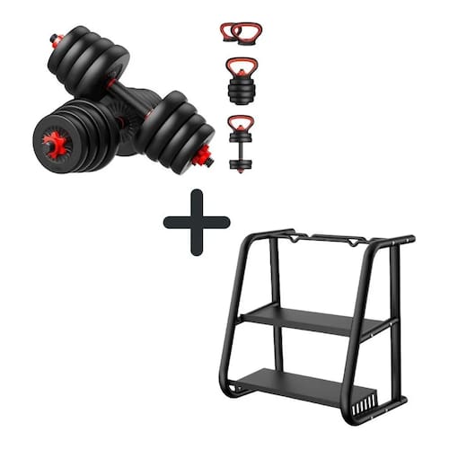 O kit halteres 6 em 1 mais completo que tornará seu treino ainda melhor e o ajudar a atingir todos os seus objetivos físicos. Com Halteres multifuncionais, cada um para seis finalidades exclusivas. Com um suporte de halteres, barra, kettlebell e flexões, que ajudam seu corpo a melhorar a força muscular, queimar calorias, melhorar a resistência muscular e a saúde do coração. PRINCIPAIS CARACTERÍSTICAS:- Tonifica seus músculos e ajuda na definição;- Exercícios completos para os membros superiores (braços, antebraços, punhos, ombros, peito, costas);.ESPECIFICAÇÕES TÉCNICAS:Itens Inclusos:- 2 x Barra roscas com presilhas C: 56cm - 4 x Anilhas 1,25kg - 4 x Anilhas 2,5kg - 8x Anilhas 3kg - 1 x conector de barra com pegada ergonômica - 2 x Alças de kettlebell - A: 14cm L: 19cm- 1 X Base Para Kettlebell - A: 21cmPeso da anilha: 39kgSuporte: Na verdade, a estrutura principal reforçada do rack para pesos Bonafit feita de ferro, para oferecer um produto muito estável e resistente. Este modelo inclui duas prateleiras planas e duas hastes de montagem. Tem um estilo simples e industrial, ficará bem a qualquer divisão da casa.Principais Características:- Suporte de halteres de metal multifuncional;- Acessórios de alta qualidade: parafuso + vedação, tornam o rack de halteres para halteres mais estável e mais forte;- Metal de corpo inteiro: aço e ferro, material pesado reforça a capacidade de carga;- Textura bonita: o produto é adotado pelo processo de moagem, bonito e prático;Especificações técnicas:Marca: BonafitDimensões: 63 x 62,5 x 41 cmMateriais: Ferro + Aço inoxidávelConteúdo da embalagem: 1 x Kit haltere 6 em 1 + 1 x Suporte para Pesos Bonafit*Imagens Meramente ilustrativas