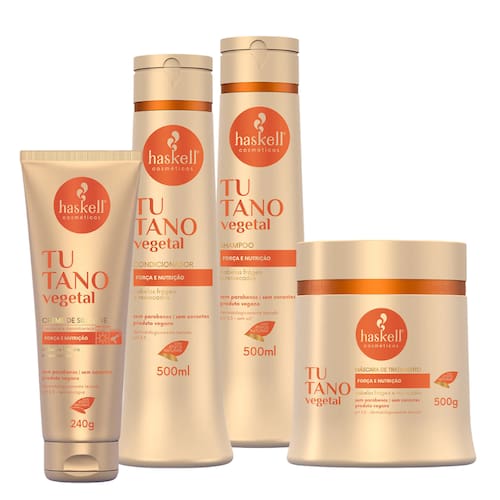 Indicação: cabelos frágeis e ressecados Ideal para recuperar o cabelo frágil e quebradiço; Essa linha nutre profundamente, além de promover hidratação de longa duração; Sua formulação mais vegetalizada, rica em aminoácidos, sais minerais e vitaminas, promove a redução da formação de pontas duplas e aumenta a resistência da fibra. Direção olfativa: floral frutal Shampoo Tutano Vegetal- Limpa suavemente, auxilia na recuperação e na vitalidade dos fios, e inicia o tratamento para cabelos mais saudáveis e nutridos. Especificações: -pH 5.5 -sem parabenos| sem corantes Condicionador Tutano Vegetal- Promove condicionamento intensivo, fortalece e confere brilho aos cabelos frágeis. Especificações: -pH 3.5 -sem parabenos| sem corantes -no poo | low poo Máscara de Tratamento Tutano Vegetal- Mantém a hidratação dos cabelos, devido à presença de D-pantenol em sua formulação. Além disso, proporciona nutrição, emoliência, brilho e maciez aos cabelos. Especificações: -pH 3.8 -sem parabenos| sem corantes -Etapa do cronograma: nutrição Creme de Silicone Tutano Vegetal- Restaura e desembaraça os fios, além de evitar os danos causados por poluição, vento, cloro, sol e poeira. Especificações: -pH 3.5 -sem parabenos| sem corantes -proteção térmica | proteção solar -sem enxágue