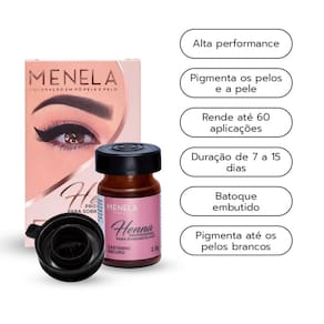Henna para Sobrancelhas Menela Desenvolvida com nanotecnologia, ela pigmenta as camadas mais profundas da pele e dos pelos - até mesmo os brancos - com fixação e intensidade, garantindo um design marcante e duradouro. É referência em performance, rendimento e segurança para quem exige o melhor. Benefícios e características da Henna Menela: Alta pigmentação desde o primeiro minuto Cobre até pelos brancos com intensidade Rendimento superior: até 60 aplicações por pote Duração de até 15 dias na pele Brilho natural e realce do desenho Aplicação rápida: de 1 a 20 minutos Praticidade com batoque integrado Fácil preparo e Dermatologicamente testada e aprovada pela ANVISA Não contém Cinza, amônia, parabenos, peróxido de hidrogênio, iodo nem metais pesados Produto Cruelty Free Tecnologia Avançada com Nanotecnologia: profunda na pele e nos fios Fixação superior, com mais definição e intensidade Liberação inteligente de ativos durante o uso Menor risco de irritação, ideal para peles sensíveis Nutrição dos fios: crescimento fortalecido Textura cremosa para aplicação precisa Resultados mais rápidos e visíveis Fixador com Extrato de Bambu - benefícios exclusivos: Fortalece os fios com sílica natural Estimula o crescimento das sobrancelhas Hidrata e proporciona brilho natural Protege e regenera a pele da região Potencializa a fixação da henna na pele Textura leve e sensação refrescante Prolonga a durabilidade da coloração O que vem no Kit Henna Menela: 1 Henna Menela 2,5g com batoque integrado 1 Fixador com Extrato de Bambu 15ml 1 Pá dosadora/medidora Modo de Preparo e Aplicação: Higienize as sobrancelhas, removendo oleosidade e impurezas. Agite bem o fixador antes de usar. Misture 1 pá de henna com 15 a 25 gotas do fixador até obter a consistência ideal uso de mixer é recomendado . Aplique com pincel apropriado e deixe agir de 1 a 20 minutos. Remova com algodão umedecido em água mineral. Marca: Não Informado