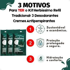 O Desodorante Em Creme Refil Herbíssimo Tradicional Antiperspirante 45g é perfeito para todas as ocasiões: desde o trabalho e a prática de esportes até os momentos de lazer e relaxamento. Leve-o sempre com você na bolsa ou mochila, garantindo proteção e frescor em qualquer situação. Ideal para usar após o banho ou sempre que sentir necessidade de reforçar a proteção contra o odor e a transpiração.