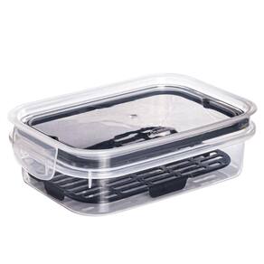Kit com 2 potes herméticos retangulares, sendo 1 porta frios com duas divisórias e 1 pote com capacidade para 500ml, conforme especificações a seguir: