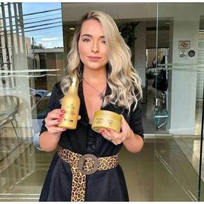 Máscara Banho De Ouro Line Golden 300ml é uma máscara capilar que protege a fibra capilar, recupera a integridade dos fios e promove maciez e brilho intenso ao cabelo. Cabelos mais sedosos, macios e brilhantes. Modo de usar: Após lavar os cabelos, aplique o produto sobre toda a extensão dos fios. Massageie e deixe agir por aproximadamente 7 minutos. Enxágue bem.