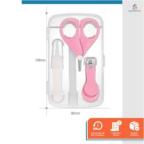 INFORMAÇÕES ADICIONAIS DIMENSÕES, PESO E CAPACIDADE Material tesoura: Aço inox e PP Material cortador: Aço carbono e PP Material pinça: Plástico Medidas tesoura: 78mm (altura) x 58mm (largura) Medidas cortador: 63mm (altura) x 26mm (largura) Medidas pinça: 88mm (altura) x 15mm (largura) Medidas lixa: 90mm (altura) x 10mm (largura) Medidas caixa: 136mm (altura) x 82mm (largura) Idade recomendada: +0 meses Marca: Baby Style Ref.: 5959053