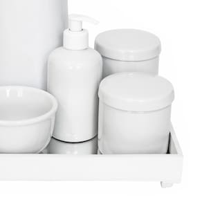 Aposte nesse kit higiene que foi desenvolvido para facilitar a vida das mamães e papais na hora de higienizar o bebê Produzido com materiais de alta qualidade, o kit conta com bandeja espelhada e porcelana de qualidade. Além disso, é um lindo item decorativo que irá encantar a todos Dados Técnicos Kit higiene com bandeja em MDF com pintura branca e fundo de espelho Itens Inclusos no Kit 01 Bandeja com espelho 01 Garrafa Térmica - Marca Termolar - modelo Magic Pump - 500 ml 01 Pote grande em porcelana branca com tampa 01 Pote pequeno em porcelana branca com tampa 01 Molhadeira em porcelana branca 01 Porta Álcool-Gel/ Sabonete Líquido em porcelana branca Medidas Bandeja: 25 cm de largura, 25 cm de comprimento e 4,5 cm de altura Garrafa Térmica: 11 cm de diâmetro e 25 cm de altura Pote Grande: 9 cm de diâmetro e 10 cm altura Pote Pequeno: 9 cm de diâmetro e 8,5 cm altura Molhadeira: 10,5 cm de diâmetro e 6,5 cm de altura Porta Álcool-Gel/Sabonete Liquido: 6,5 cm de diâmetro e 15 cm de altura Marca: Não Informado