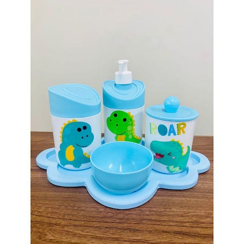 Kit Organizador para bebê c/bandeja Cor do Pote: BRANCO PADRÃO MATERIAL DOS POTES: ACRÍLICO MATERIAL DA BANDEJA: MDF Kit acompanha: - 1 bandeja de madeira em MDF - 1 porta sabonete / álcool gel - 1 molheira - 1 porta algodão - 1 porta cotonete MEDIDAS DA BANDEJA EM MDF: Diâmetro: 30x22cm MEDIDA DOS POTES: Porta algodão/cotonete: 8x10,5 cm Porta sabonete líquido: 12x21 cm Molheira: 8x5 cm Ean: 7898901266396