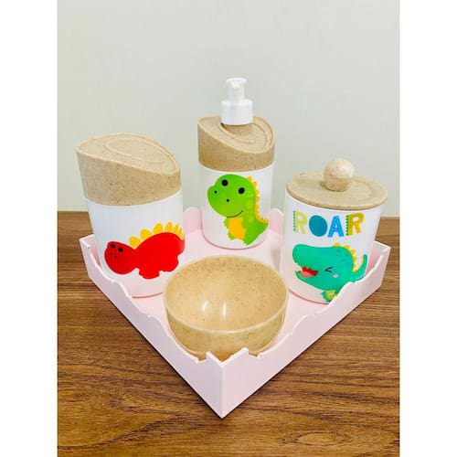 Kit Organizador para bebê c/bandeja Cor dos Potes: BRANCO PADRÃO MATERIAL DOS POTES: ACRÍLICO MATERIAL DA BANDEJA: MDF Kit acompanha: - 1 bandeja de madeira em MDF - 1 porta sabonete / álcool gel - 1 molheira - 1 porta algodão - 1 porta cotonete MEDIDAS DA BANDEJA EM MDF: Diâmetro: 20x20cm MEDIDA DOS POTES: Porta algodão/cotonete: 8x10,5 cm Porta sabonete líquido: 12x21 cm Molheira: 8x5 cm Ean: 7898901266372