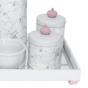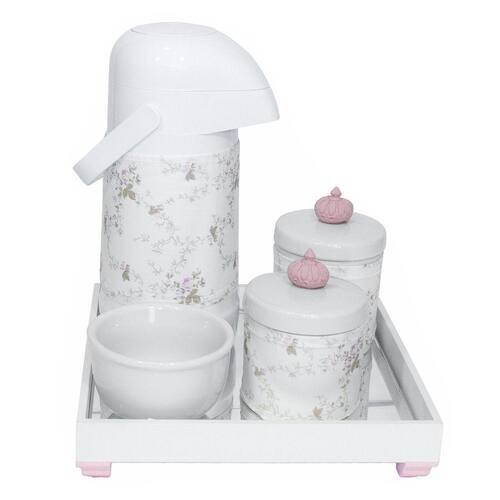 Aposte nesse kit higiene que foi desenvolvido para facilitar a vida das mamães e papais na hora de higienizar o bebê Produzido com materiais de alta qualidade, o kit conta com bandeja espelhada e porcelana de qualidade. Além disso, é um lindo item decorativo que irá encantar a todos Dados TécnicosKit higiene com bandeja de MDF em pintura branca com detalhe rosa, fundo de espelho e decoração com resinas de Coroa rosa nas tampas dos potes com capas. Itens Inclusos no Kit01 Bandeja com espelho01 Garrafa Térmica - Marca Termolar - modelo Magic Pump - 500 ml01 Pote grande em porcelana branca com tampa01 Pote pequeno em porcelana branca com tampa01 Molhadeira em porcelana branca01 Conjunto de 3 capas em tecido e tiras aderentes para garrafa térmica, pote grande e pote pequeno MedidasBandeja: 25 cm de largura, 25 cm de comprimento e 4,5 cm de alturaGarrafa Térmica: 11 cm de diâmetro e 25 cm de alturaPote Grande: 9 cm de diâmetro e 10 cm alturaPote Pequeno: 9 cm de diâmetro e 8,5 cm alturaMolhadeira: 10,5 cm de diâmetro e 6,5 cm de altura