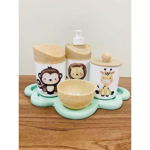 Kit Organizador para bebê c/bandeja Cor dos Potes: BRANCO PADRÃO MATERIAL DOS POTES: ACRÍLICO MATERIAL DA BANDEJA: MDF Kit acompanha: - 1 bandeja de madeira em MDF - 1 porta sabonete / álcool gel - 1 molheira - 1 porta algodão - 1 porta cotonete MEDIDAS DA BANDEJA EM MDF: Diâmetro: 30x22 cm MEDIDA DOS POTES: Porta algodão/cotonete: 8x10,5 cm Porta sabonete líquido: 12x21 cm Molheira: 8x5 cm Ean: 7898901200208