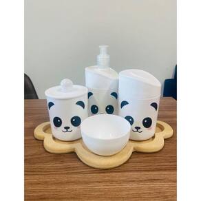 Kit Organizador para bebê c/bandeja em MDF. Cor do Pote: BRANCO PADRÃO Tampas: BRANCO MATERIAL DOS POTES: ACRÍLICO MATERIAL DA BANDEJA: MDF Kit acompanha: - 1 bandeja de madeira em MDF. - 1 porta sabonete / álcool gel - 1 molheira - 1 porta algodão - 1 porta cotonete MEDIDAS DA BANDEJA EM MDF: Diâmetro: 19,5x19 cm Altura: 5x8cm MEDIDA DOS POTES: Porta algodão/cotonete: 8x10,5 cm Porta sabonete líquido: 12x21 cm Molheira: 8x5 cm Marca: Doya Kids