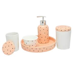 Conteúdo do kit: - 1 porta sabonete liquido 195ml 15x6cm altura x diâmetro - 1 porta algodão 11x7,5cm altura x diâmetro - 1 porta cotonetes 10x6,5cm altura x diâmetro - 1 molhadeira 5,5x8cm altura x diâmetro - 1 bandeja 3x19cm altura x diâmetro