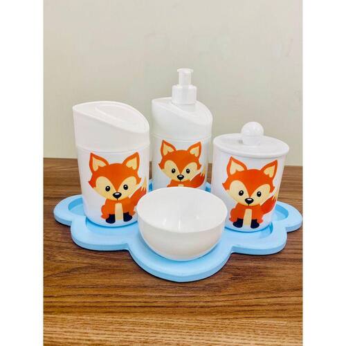 Kit Organizador para bebê c/bandeja Cor do Pote: BRANCO PADRÃO MATERIAL DOS POTES: ACRÍLICO MATERIAL DA BANDEJA: MDF Kit acompanha: - 1 bandeja de madeira em MDF - 1 porta sabonete / álcool gel - 1 molheira - 1 porta algodão - 1 porta cotonete MEDIDAS DA BANDEJA EM MDF: Diâmetro: 30x22cm MEDIDA DOS POTES: Porta algodão/cotonete: 8x10,5 cm Porta sabonete líquido: 12x21 cm Molheira: 8x5 cm Ean: 7898901269144