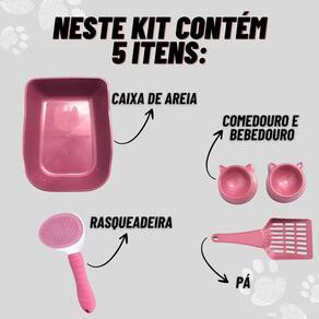 01 Kit Completo para Gatos - Caixa de Areia, Pá, Comedouro e Bebedouro